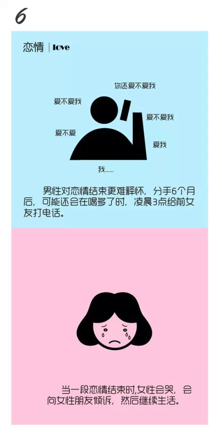 男女失恋后三个阶段图男生女生失恋后差异图分手后女生和男生的区别